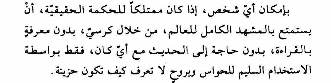 يجيبني السيد مون: “ما تقوله حقيقة ولن أجادلك فيه. إنما المرء هو سيد اختياراته، ومحاولة الجدال لإقناع الآخر بالعكس هو دسّ خفي لخيانة الذات في سبيل معنى صاغه آخر. ولعل المعنى بالمعنى لا يتقابل، لذا النفوس أسرار، لذواتنا حياتها السرية بعيداً عنا، عن العالم، تحيا في خفاء تحيك الوجود من الخلف فيظهر لنا في سلسلة أحداث تُصنع أمام ناظرينا لنستمد منها المعنى. ولكن في الأساس المعنى يأتي من الداخل، يسبق الحياة نفسها، يسبق رفع اليد وحركة الإصبع، فذلك أن الحدث قد حدث ليؤكد الداخل. كأن للمرء حياتين في نفس اللحظة: حياة أولى ذاتية روحية إذا أحببت أن تصفها بالمعنى الروحي، أو نفسية إذا كنت تميل للسيكولوجية. فالوضع أقرب للشبه بكواليس المسرح، يتم تجهيز كل شيء، وعندما تصعد الشخصية للمسرح هذا يمثّل الحدث ذاته الذي غالباً أثناء القيام به نكون مراقبين لا فاعلين، لأن الفعل يحدث ونحن نراقبه يحدث. والجمهور يمثّل المرايا العاكسة، إذا صفّق أكّدنا المعنى الأولي الذي يمثّل السيناريو في الكواليس، وإذا حزن الجمهور أيضاً يُعتبر مؤكِّداً للسيناريو. بهذا العالم الخارجي يعتبر فقط مؤكِّداً للتجليات، فالعالم أصمّ حيادي لا يقدم المعنى، بل الذات تصنعه في لُدُنها بعيداً عن النفس وعن الحياة ذاتها، يُصاغ من الفكر قبل أن يصبح فكراً، تتعامل مع المجال الذي يسبق المجال. هناك فوق وأعلاه، لذا لا تظن أن للجميع ترفاً في استخلاص هذه التجربة. فبعض البشر مهمتهم فردية بحتة، وأرواح أخرى قدمت للحياة فضاعت عنها السبل فيستلزم أن تعتمد على العالم الخارجي الذي لا يُسمن ولا يُغني من جوع.”